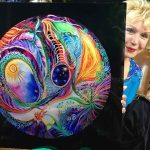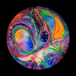 This collector’s item has been produced in vibrant colors on high-gloss aluminum. Authentically matching the original chandelier painted for artists Alex and Allyson Grey and CoSM, their art sanctuary and church in Wappingers Falls, NY.