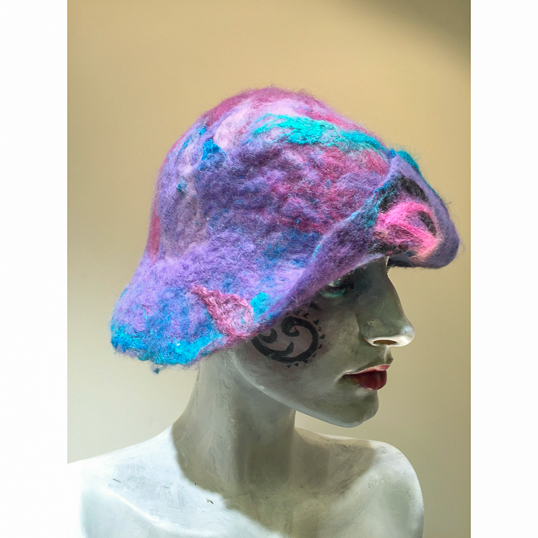 Fanciful, fun and practical; Ulla;s creativity has burst forth in one-of-a-kind wearables. Each is hand felted of fine wools and silk, renewable & sustainable resources. Be courageous and bring joy!